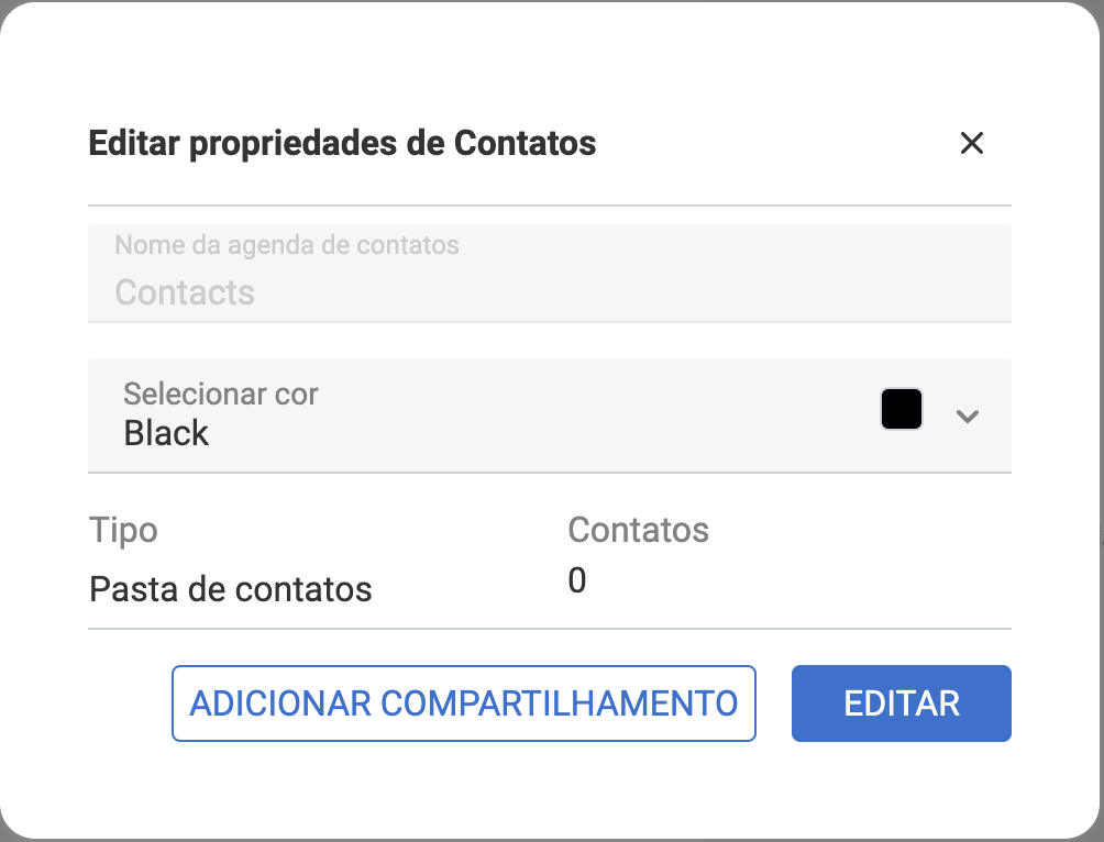 Na seção Editar agenda de contatos poderá alterar o nome, mudar a cor ou compartilhar com outros usuários internos: